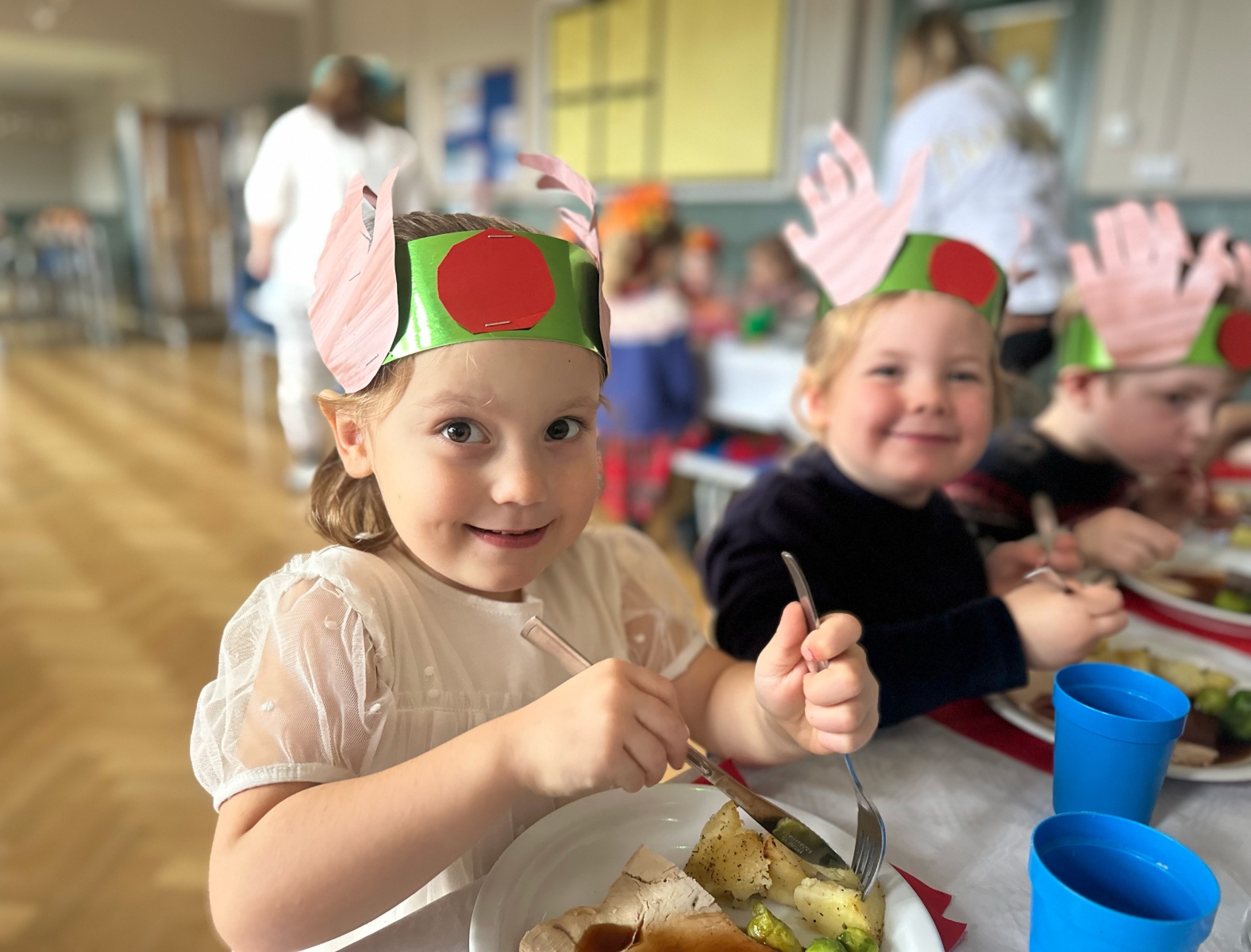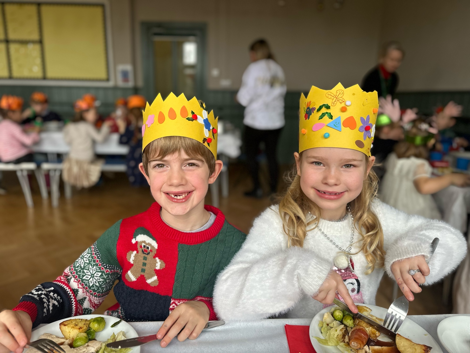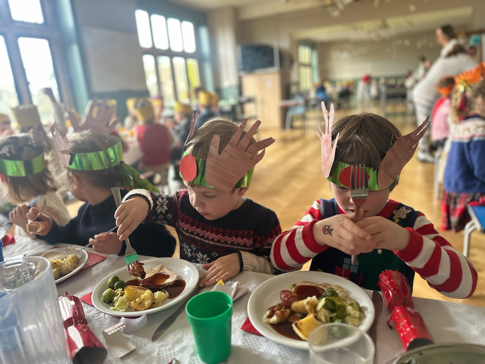 Lunchtime was wonderfully festive as pupils tucked into a beautifully prepared Christmas feast, complete with all the traditional trimmings. From roast turkey and stuffing to cranberry sauce and a Christmas-pudding-shaped cake – it was everything a festive lunch should be.
